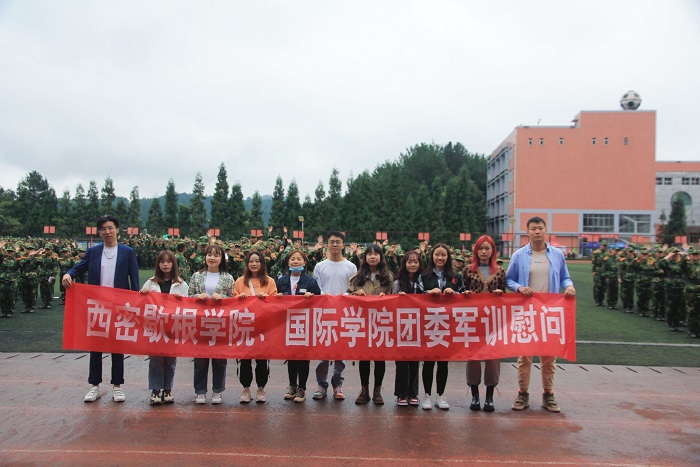 团委走进军训场地慰问正在训练的2020级新生。