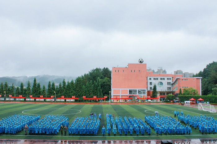 党委书记、院长、军训师成员、辅导员代表、教师代表、在校生代表、全体新生以及前来观礼里的部分新生家长参加。