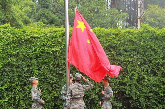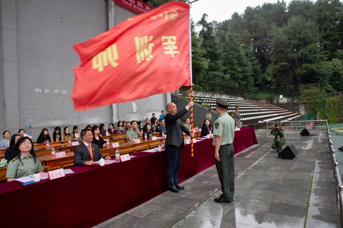党委书记刘雷为军训师授旗,军训师副政委周晶同志接旗。