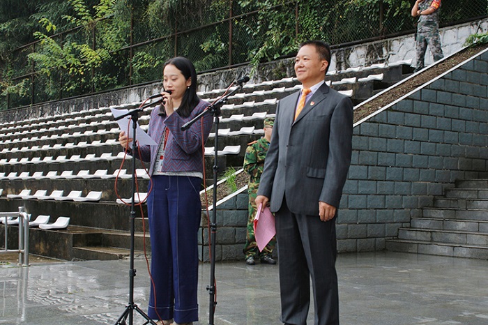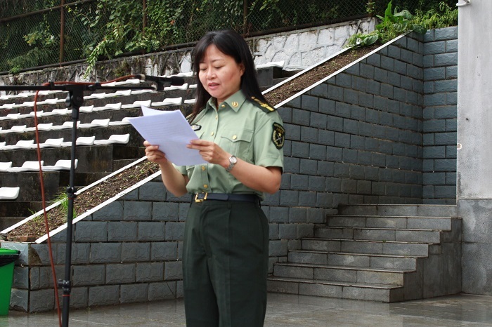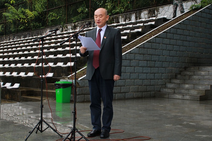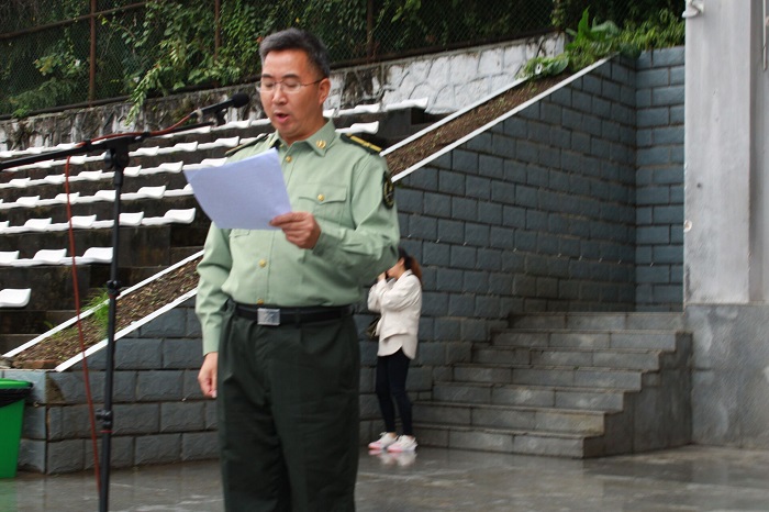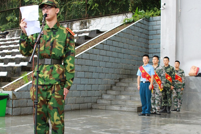 副校长、军训师师长肖小虹作军训动员讲话,对新生提出三点希望和要求:一是统一思想,提高认识;二是端正态度,自立自强;三是科学实训,确保安全。