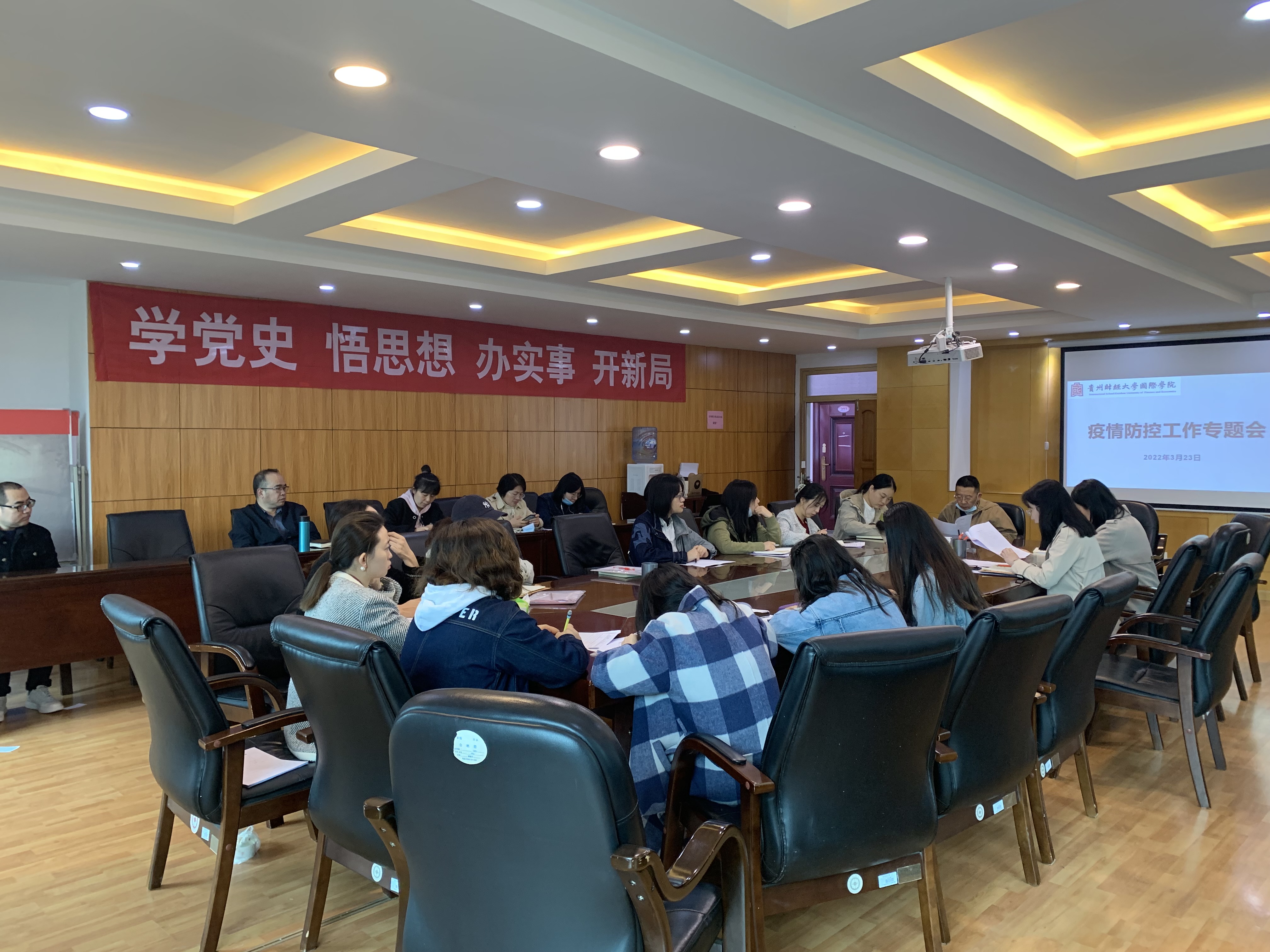 肖启迪结合疫情防控要求,就近期学生核酸抽检、全员核酸检测预案等事项作出具体要求。院团委负责人颜华菲老师,结合团委工作要点进行了具体安排。会议要求,目前将继续加大对摸排出的心理异常学生的关注力度,深入做好学生思想引导、做好安全排查和学生心理健康教育。