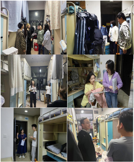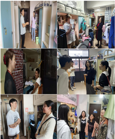 领导班子和辅导员利用值班时间全面走访学生宿舍,为同学们答疑解惑、排忧解难。