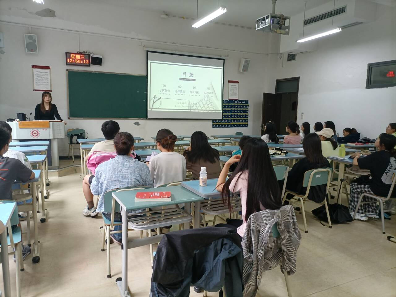 宣讲会上,公司数据部门负责人赵萌对公司的业务与服务项目、公司的架构、以及其未来发展与布局进行了介绍,并对本次招聘所招岗位及待遇进行了详细说明。同学们在了解本次招聘岗位后,积极投递简历。