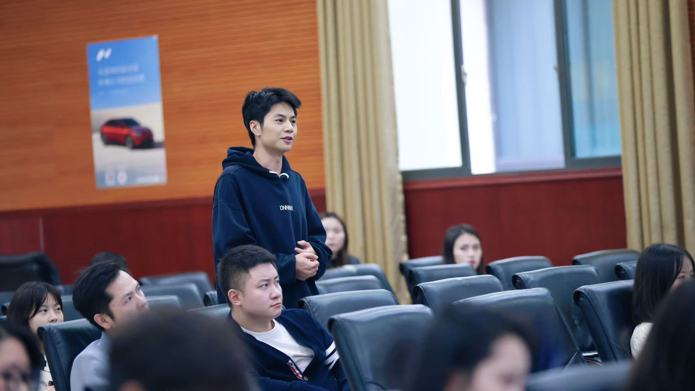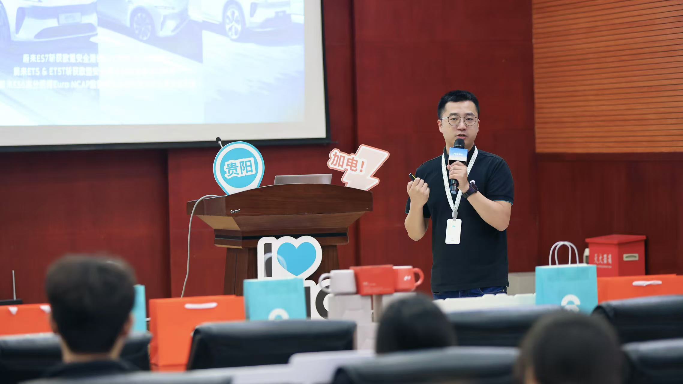 宣讲会上,为了帮助同学们了解企业,并找到合适自身的岗位。蔚来汽车贵阳区域招聘负责人刘振宇,首先对企业概况、Et足球直播、招聘岗位等方面进行了详细讲解。期间,刘振宇通过企业宣传片、PPT讲解及互动问答等形式,让现场学生更深入了解蔚来汽车公司。