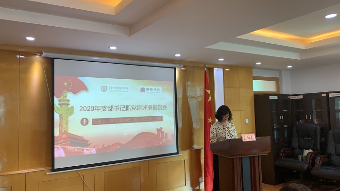 党委2020年度党支部书记党建工作述职评议考核工作实施方案》,明确了述职评议考核的实施范围、主要内容、述职方式和工作要求。述职采取现场述职和书面述职的方式相结合,教工第一支部书记黄暐等七位支部书记逐一进行述职,王治航与七位党员代表分别对述职的支部书记进行打分。