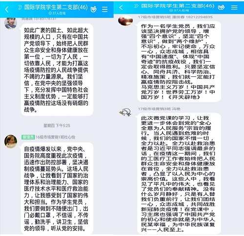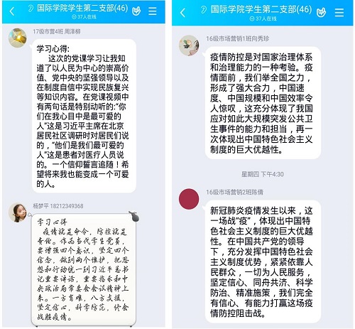 学生第二党支部以微党课的形式,开展主题为“从疫情防控看中国制度优势”的党课学习。