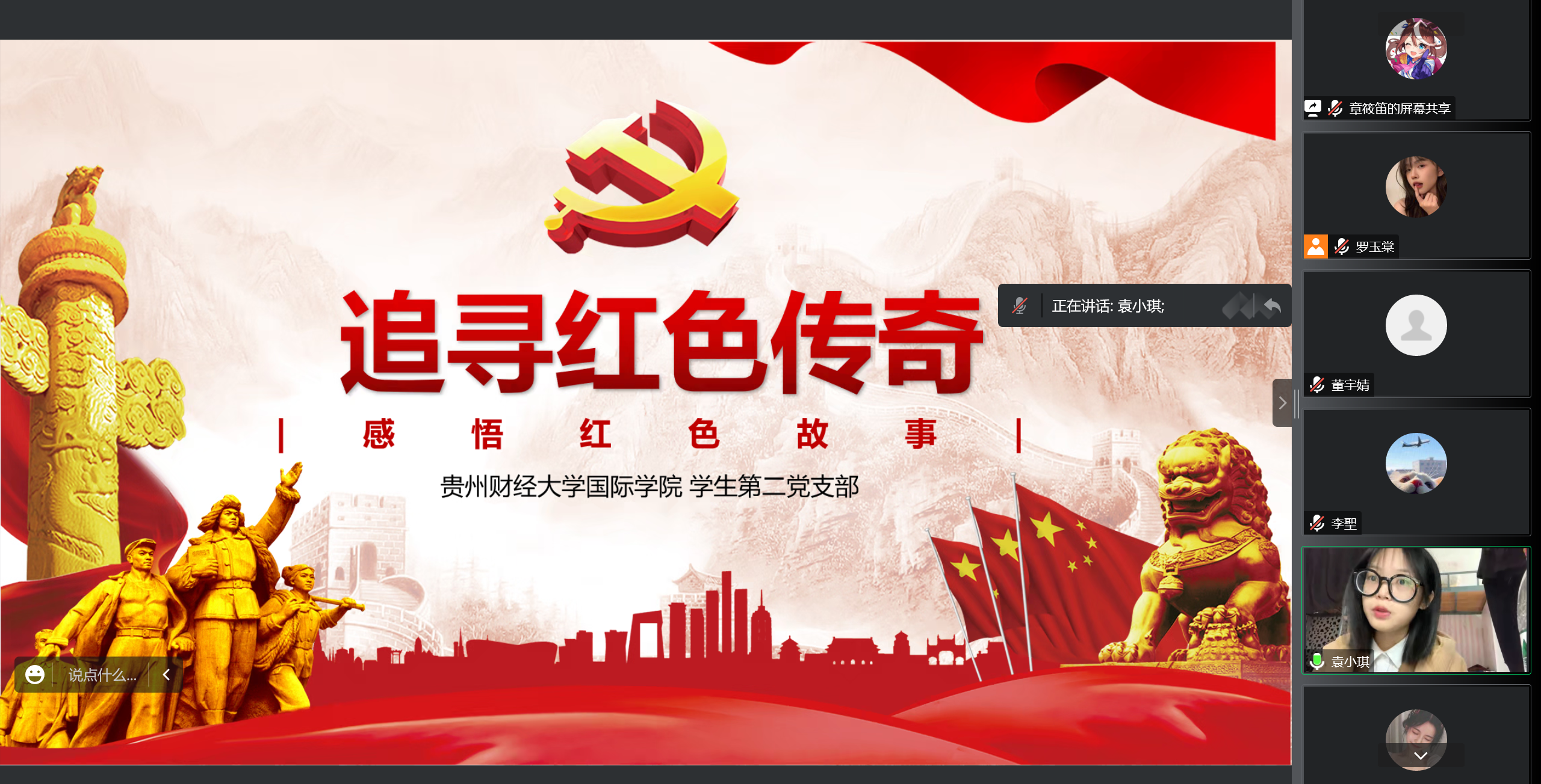 学生第二党支部线上开展“追寻红色传奇,感悟红色故事”主题党日活动。支部全体党员参与,会议由支部书记董宇婧主持。