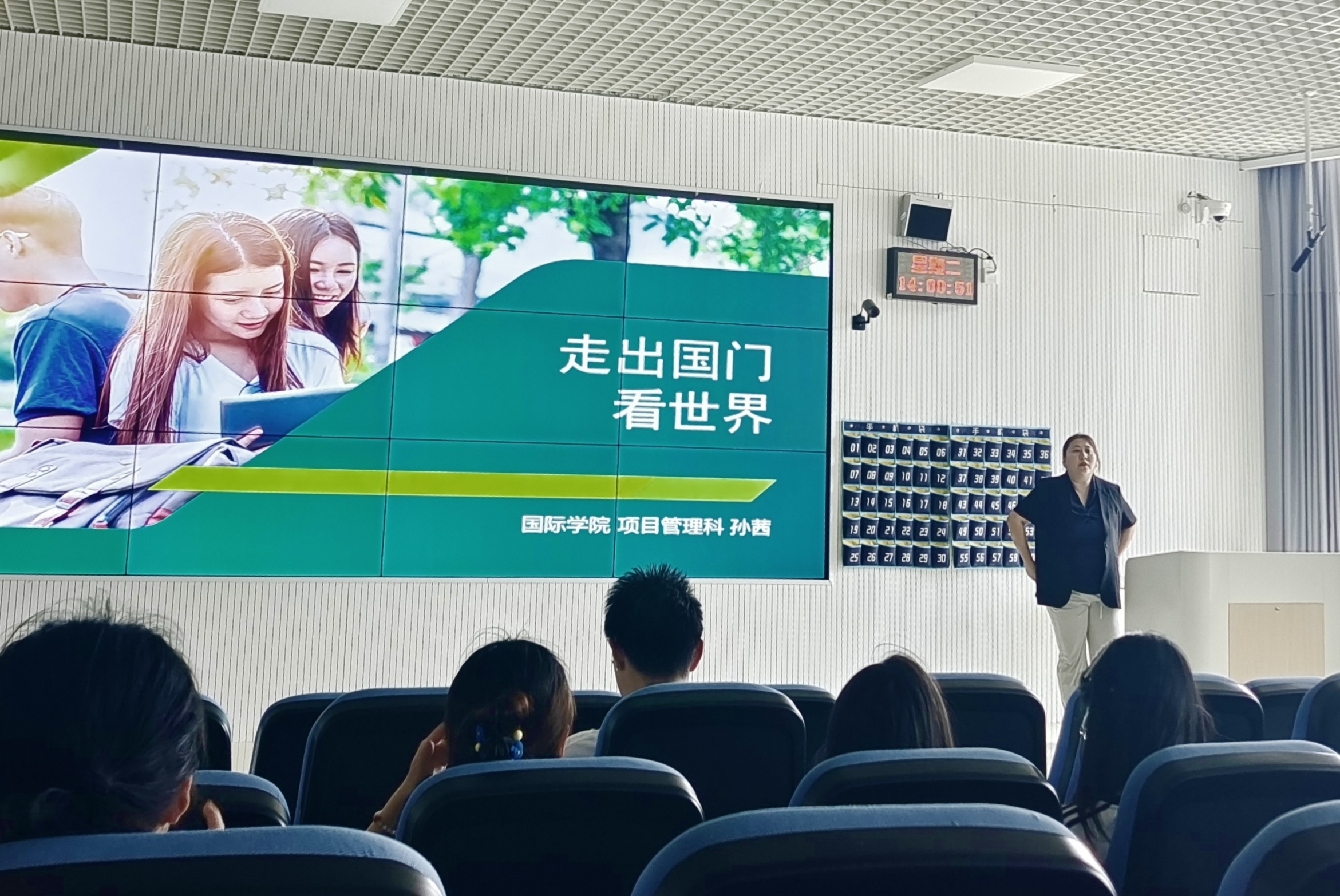 项目管理科副科长孙茜以“走出国门,看世界”为题进行主题分享。她结合自身带队经验,通过图文并茂的形式展示了研学过程中的精彩瞬间,并围绕“全球化视野下的个人成长”“跨文化沟通能力提升”等维度,深入剖析了国际研学的核心价值。并且,她还就项目申请条件、流程及注意事项等进行了系统讲解,为有意向参与国际交流的学生提供了实用指导。