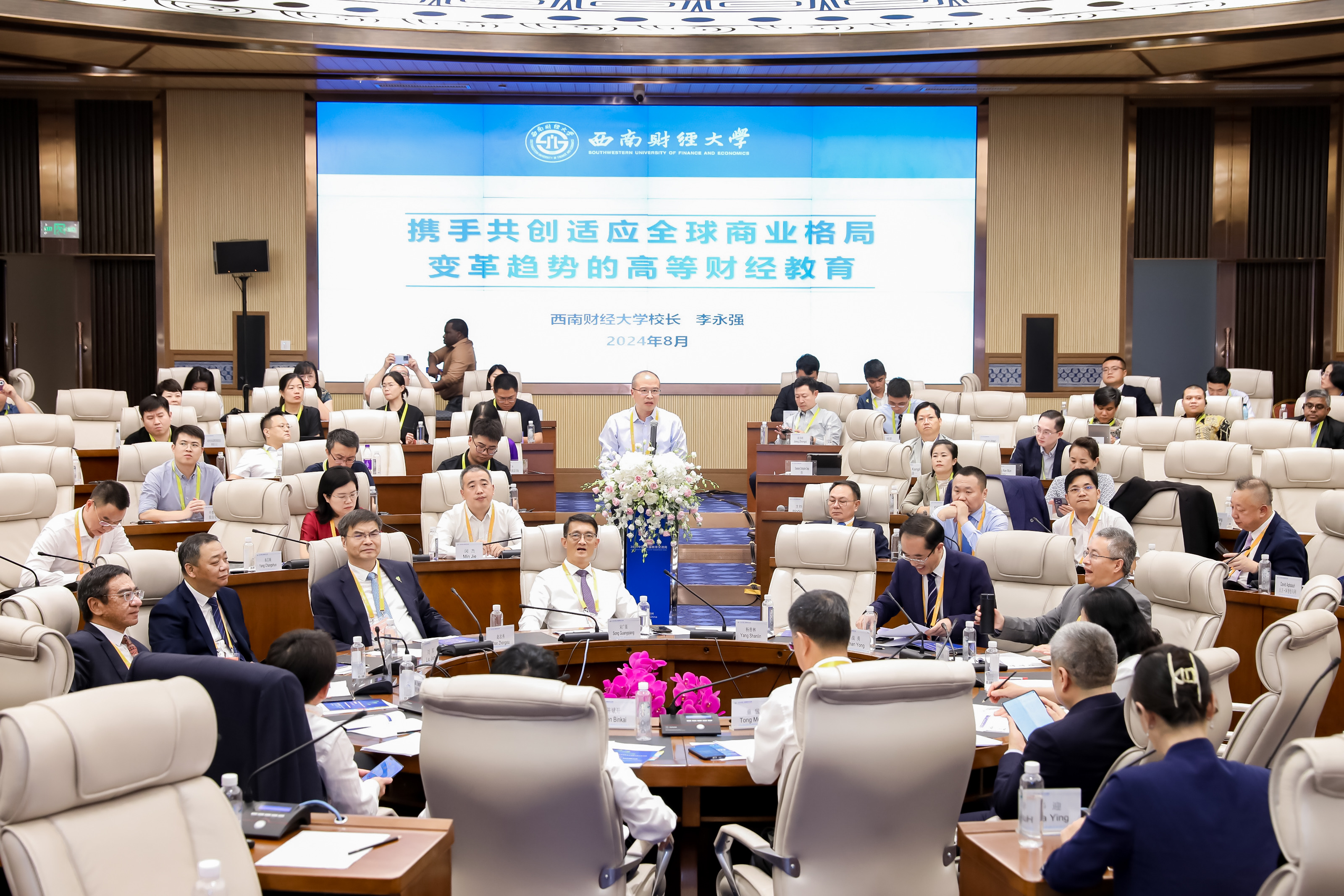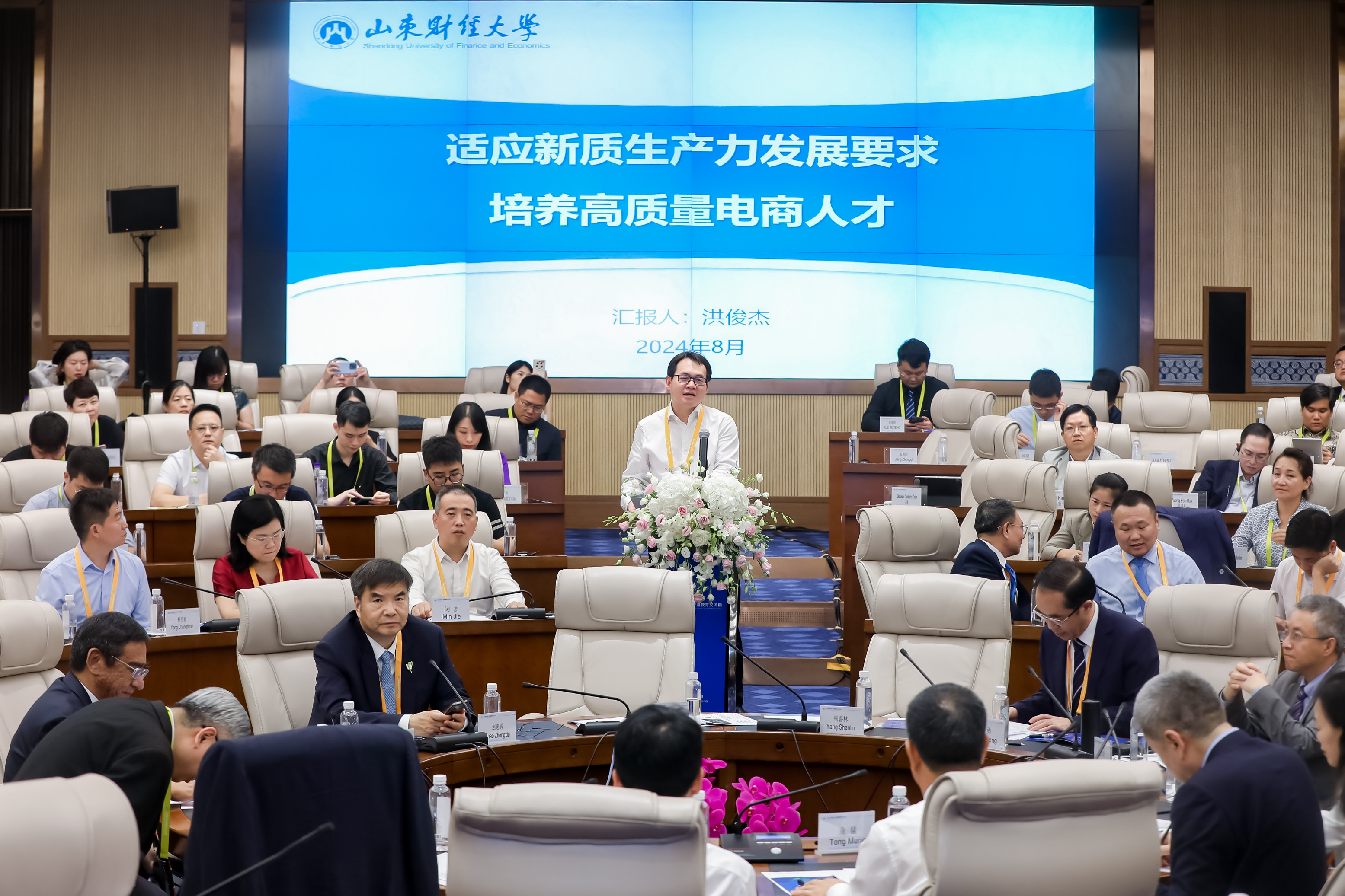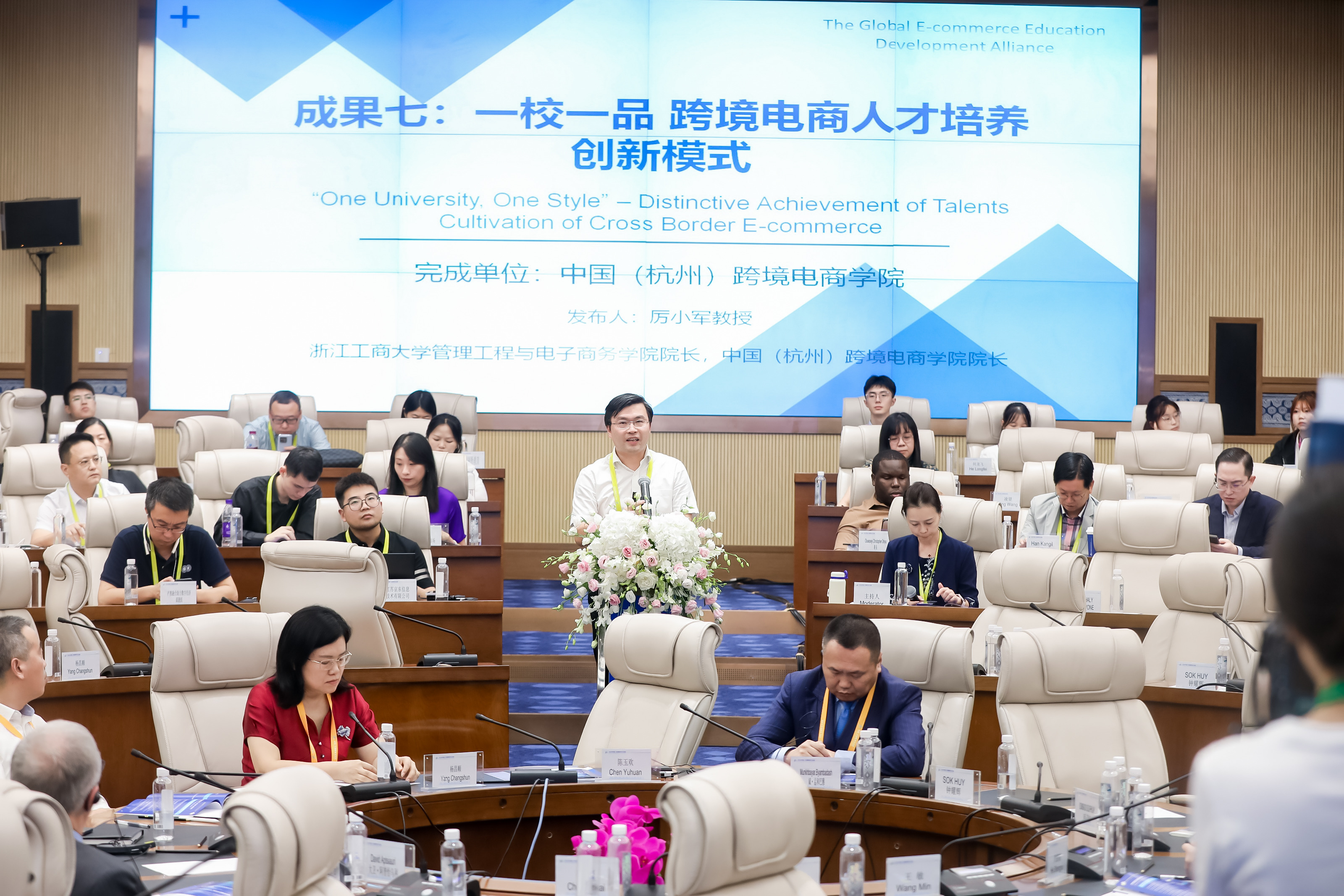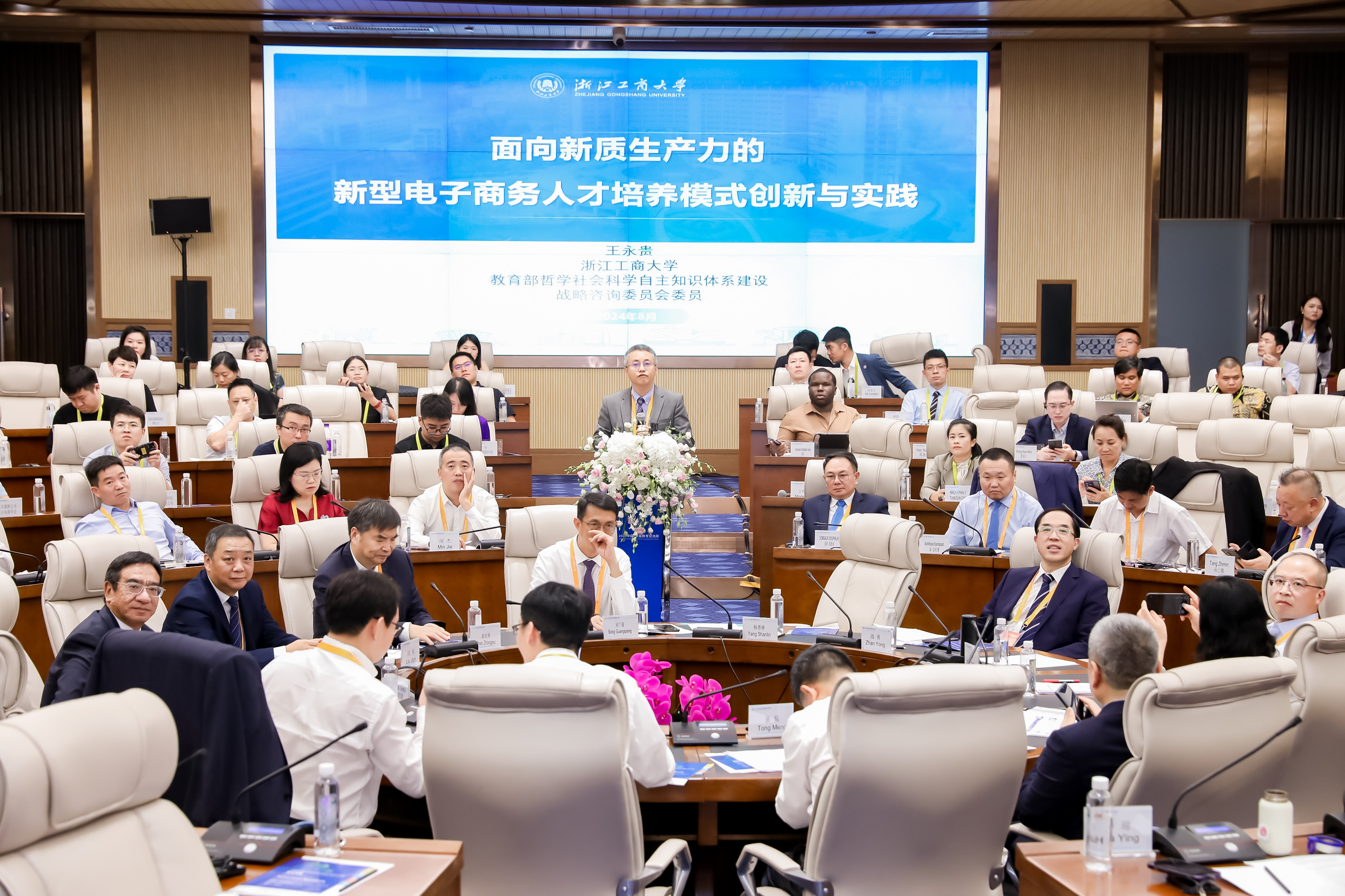 会上的中外校长圆桌对话,邀请了14名中外校长及专家围绕跨境电商、数字贸易、数字经济作主旨发言。圆桌对话由浙江工商大学校长王永贵主持。云南财经大学校长王敏、武汉轻工大学董仕节、老挝乌多姆赛省教育厅厅长宋萨、马来西亚拉曼大学校长尤芳达、柬埔寨柬华应用科技大学执行校长钟耀辉、蒙古财经大学校长斌·孟和巴雅尔、泰国正大管理Et足球直播 助理校长、中国东盟研究中心(CASPIM)主任汤之敏、格鲁吉亚工商会会长大卫·阿普恰乌利等中外嘉宾参加了圆桌对话。中外教育领袖围绕电商教育的新趋势、新模式展开深入交流。