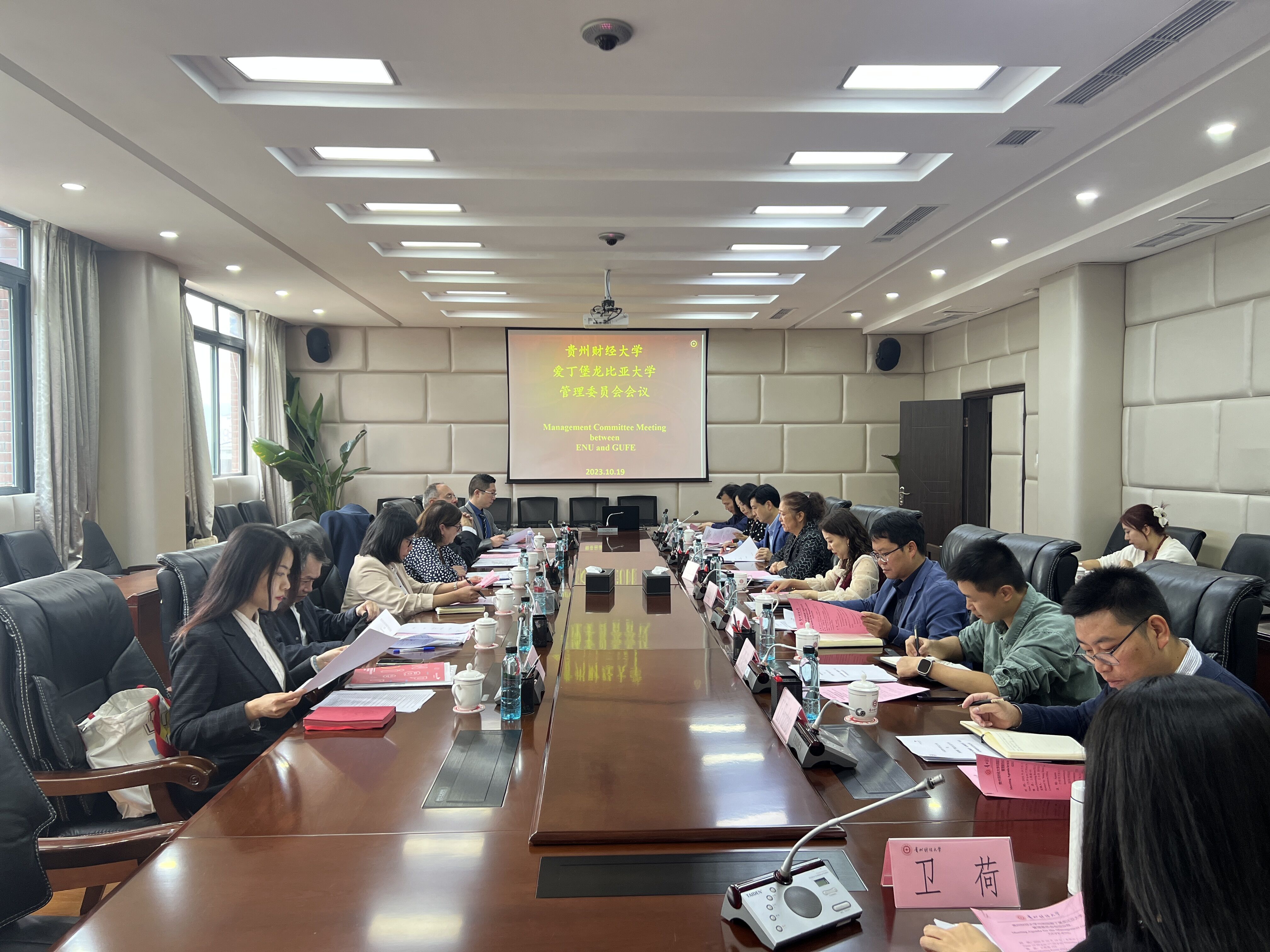 代表团一行参观了Et足球直播 新校区,对学校优美校园环境高度赞扬。访问期间,龙比亚大学还分别开展了2023级新生见面会和2022级、2021级出国意向学生宣讲动员会以及《社会责任投资》学术讲座。最后,双方召开了项目管理委员会,与会人员围绕提高办学质量、人才培养方案优化、短期出国留学项目等方面展开了充分的讨论。